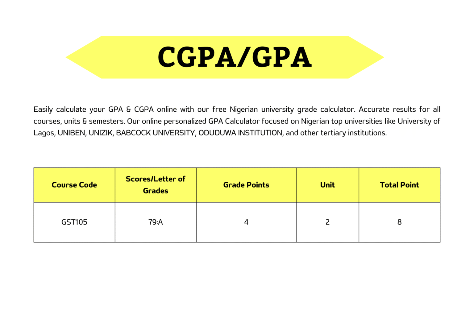 Our free online GPA & CGPA calculator is designed to help Nigerian university students  input their course units, scores, and semester GPAs to get accurate results.