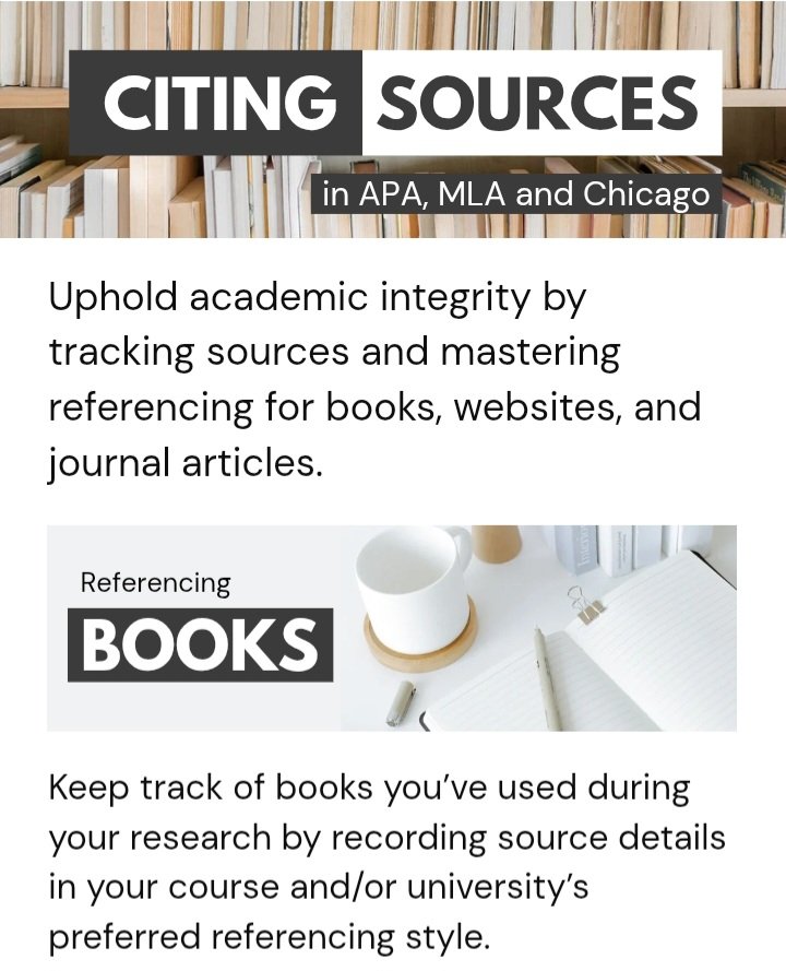 To cite your work perfectly, enter the book, article, journal details or website and the citation tool will generate a properly reference for you.